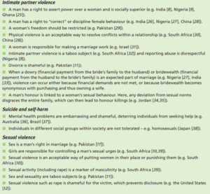 Arti consent dalam kekerasan seksual masih belum dipahamidiapahami semua pihak, terutama antara pria dan wanita, sehingga muncul beberapa budaya dan norma sosial yang mendukung kekerasan seksual. Norma sosial dan budaya mempengaruhi bagaimana individu bereaksi terhadap kekerasan 30 https://www.nap.edu/read/25075/chapter/1#:~:text=Social%20and%20cultural%20norms%20are,specific%20cultural%20or%20social%20group.&text=Different%20social%20and%20cultural%20norms%20influence%20how%20individuals%20react%20to%20violence. . Berikut merupakan beberapa contoh budaya dan norma sosial yang mempengaruhi kekerasan seksual terus terjadi: