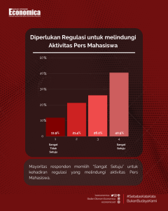 Untuk mengetahui lebih lanjut mengenai urgensi diberlakukannya regulasi ini, penulis melakukan survei dengan melibatkan sekitar 50 responden mahasiswa dari berbagai fakultas di Universitas Indonesia. Hasil survei menemukan bahwa mayoritas responden merasa “sangat setuju” jika diperlukan suatu regulasi untuk melindungi aktivitas pers mahasiswa.