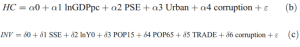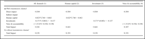 Additionally, corruption also has an indirect effect on growth through the channels of several intervening variables, namely in the investment equation (a), human capital (b), and institutional quality measured by voice and accountability (c).