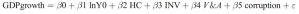 From the first model, we can see the regression results by examining the relationship between GDP growth influenced by human capital (HC), investment (INV), and institutional quality measured through ‘voice and accountability’ (V&A), and corruption (the direct effect of corruption on GDP growth represented by β5) :